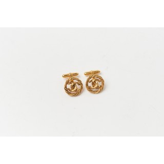 CHANEL PAIRE de BOUTONS DE MANCHETTE siglés en métal doré