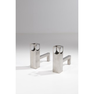 Galerie Maison et Jardin (XXe) Paire de chenets Acier inoxydable ...