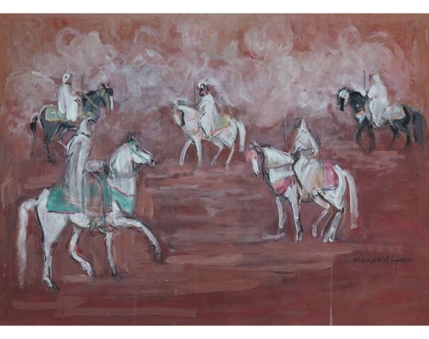 Hassan El Glaoui est né en 1923 à Marrakech. Il doit sa carrière de peintre au Premier ministre britannique Winston Churchill qui passa de nombreux séjours à Marrakech auprès de son père le Pacha El Glaoui et qui insista pour qu'il autorise son fils à peindre. El Glaoui a sublimé le cheval et son cavalier.
