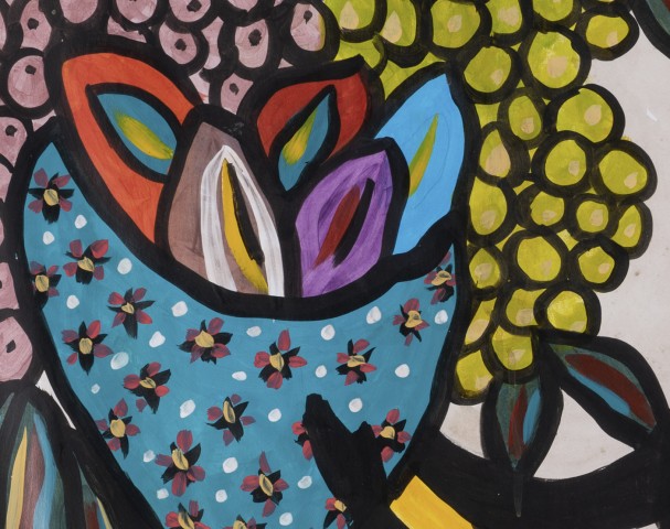 Largement reconnue à travers le monde, l’artiste Fatma Mahieddine dite Baya est une des rares femmes de sa génération à se distinguer pour sa peinture en Algérie. Révélée très jeune par le galeriste Aimé Maeght, elle expose à Paris dès 1947 des mises en scène de danseuses et autres figures féminines magnifiées, dont les robes se mêlent aux décors d’oiseaux multicolores, poissons et papillons qui forment les motifs récurrents de son œuvre. La douceur des formes et leur entremêlement, l’exubérance des couleurs, les effets de répétition donnent à son travail la prégnance et l’onirisme du merveilleux.