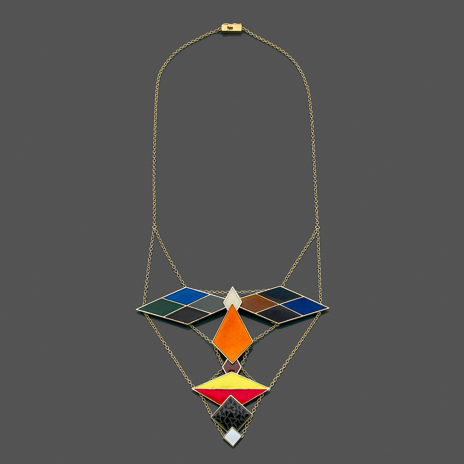 Parallèlement à leur production de mobilier et d’architecture, les deux designers adaptent leurs formes et leur esthétique à la joaillerie. Le titre de la pièce réalisée par Alessandro Mendini (Les "Stilemi") est une référence aux symboles de l'alphabet imaginés par l’artiste.