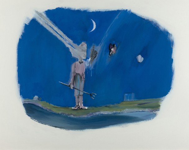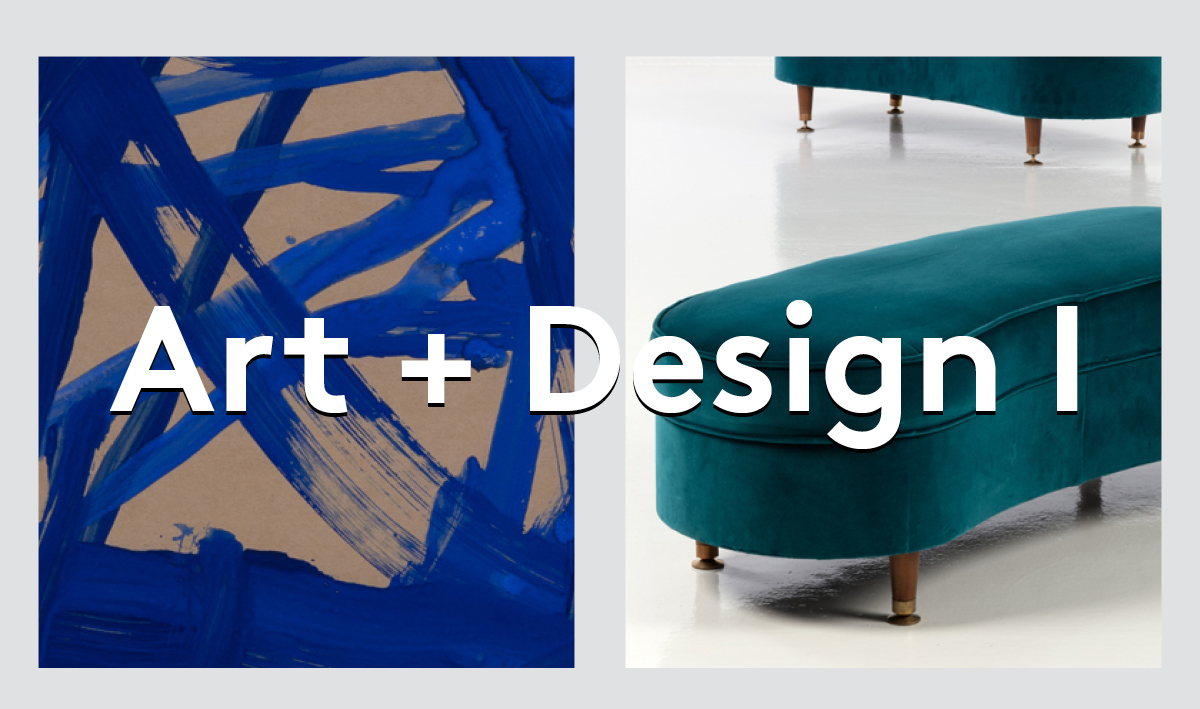 Dans la vente « ART + DESIGN I » qu’organise PIASA du 23 au 28 avril, la couleur bleue confère une étonnant singularité aux œuvres réunies. Deux touches de bleu constituent le point d’ancrage du Personnage au chapeau d’Arroyo, tandis que la force expressionniste du bleu a été exploitée par James Brown dans une série d’œuvres sur papier du milieu des années 1980. La charge éminemment symbolique de cette couleur s’associe à sa qualité décorative. Il n’est donc pas surprenant de la retrouver abondamment utilisée dans les nombreux matériaux employés par le design de la seconde moitié du XXe siècle. C’est le cas du grès émaillé dont se sert Rigmor Nielsen pour réaliser son lampadaire. Héritier d’une tradition millénaire, Max Ingrand teinte le verre en bleu avec Modèle 2218. Inspiré par l’esthétique géométrique, André Sornay (1902-2000) assemble des couleurs à la surface des meubles qu’il conçoit, ici une armoire en bois, Isorel et métal.