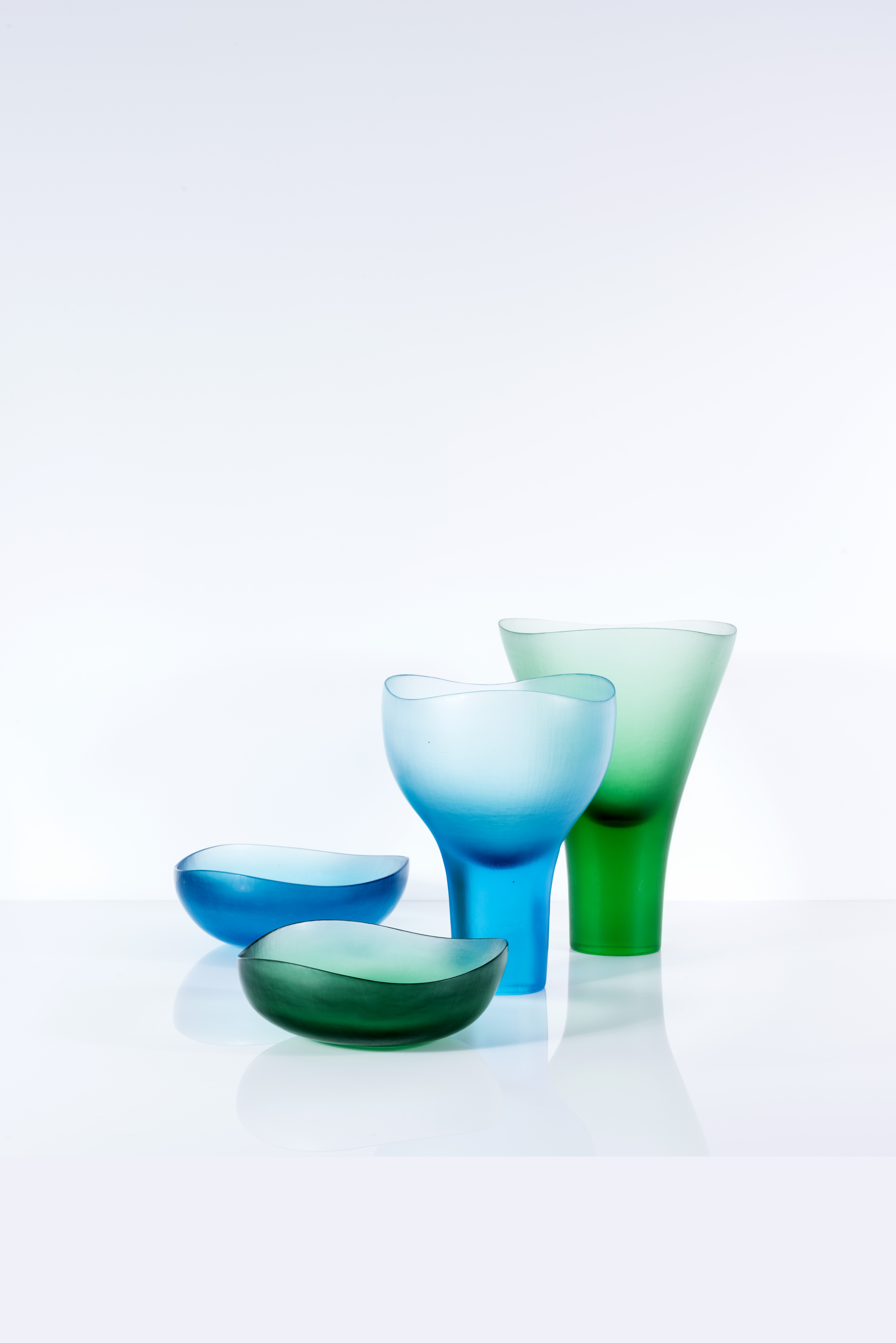 Deux coupes et deux vases en verre "Battuto"