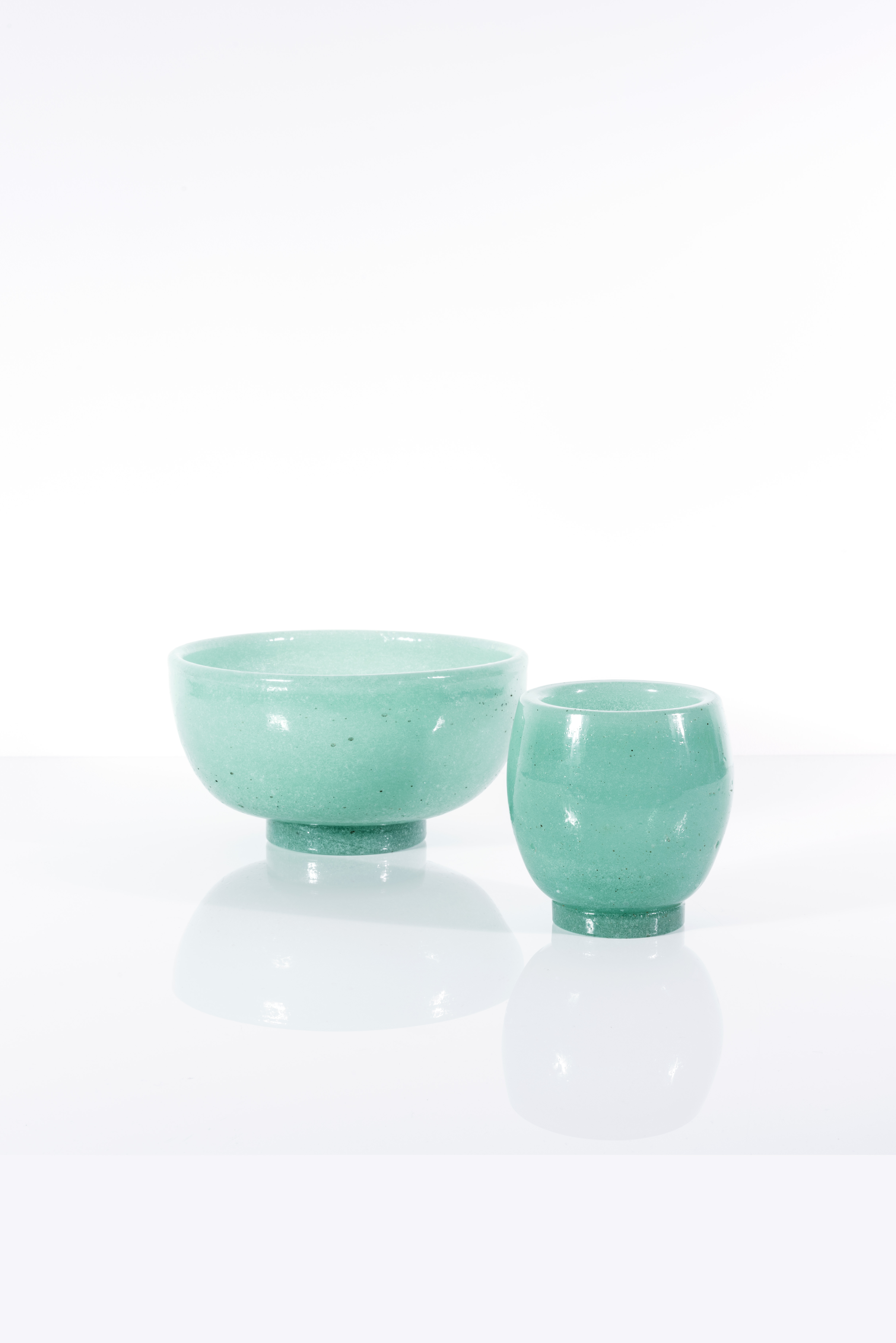 Vase et coupe en verre soufflé "A Bollicine"
