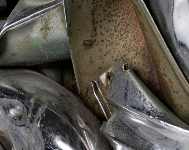 La célèbre série des « Compressions » de l’artiste fut initiée en 1960, après qu’il découvre fortuitement chez un ferrailleur de Genevilliers une presse hydraulique américaine géante capable d’engloutir la taille d’une voiture. A partir de ce moment-là, il exécutera des Compressions durant toute sa carrière, explorant les possibilités formelles de la presse à la manière d’un outil artistique.