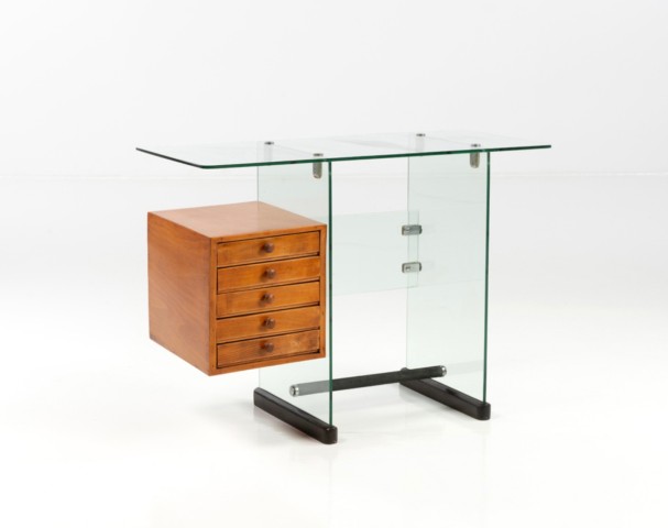Enfin sera présentée une spectaculaire table de salle à manger ovale en acajou verni (entre 40 000€ et 60 000€) aux courbes épurées de l’architecte Piero Bottoni (1903-1973). De formation riche et éclectique (académie de Brera et Politecnico de Milan) il s’intéresse à différents domaines dont l’architecture, l’urbanisme, le design, la restauration et le mobilier. Figure majeure du Rationalisme italien, il est aussi parmi les fondateurs du magazine Quadrante.