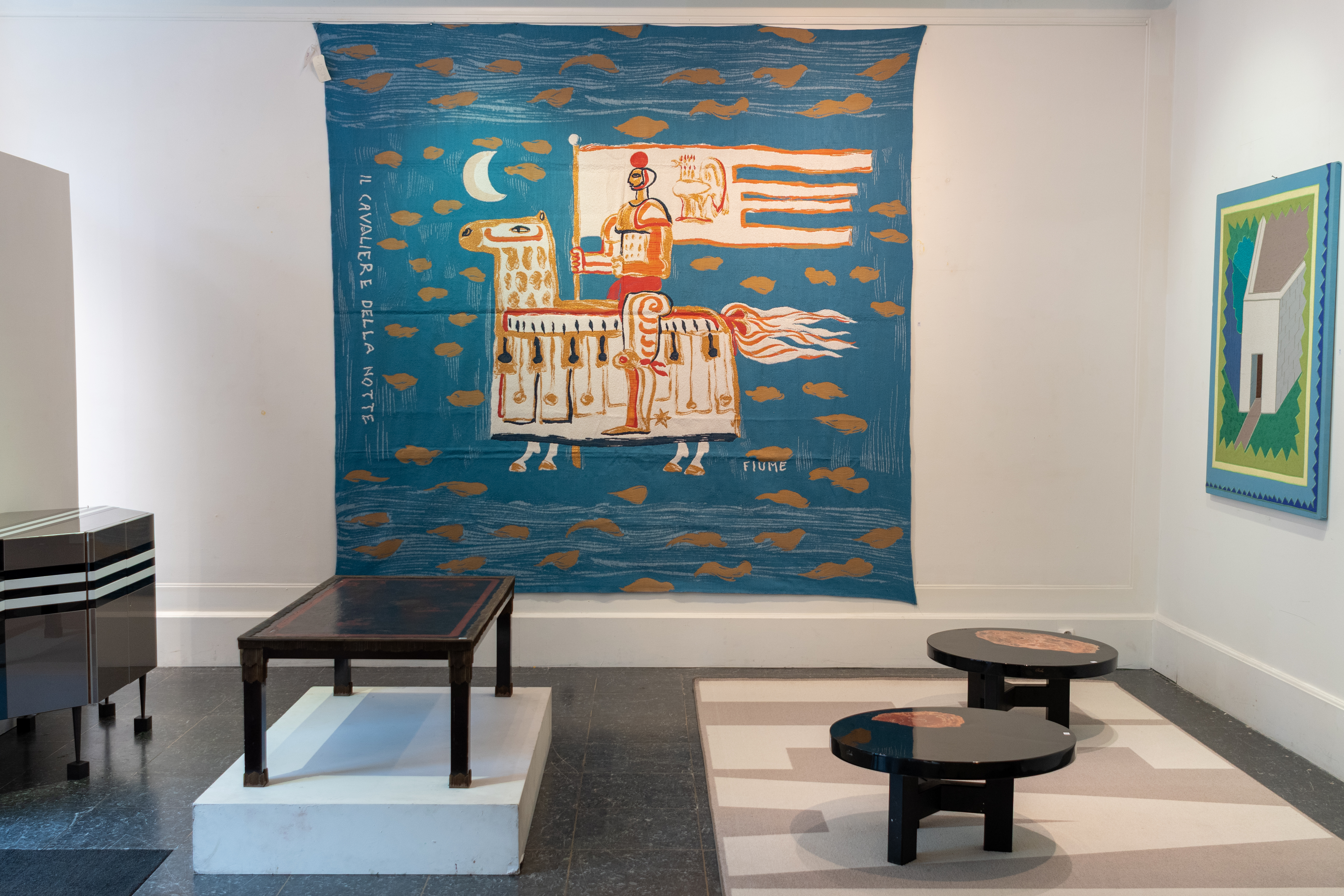 Lors de cette vente seront également présentées des pièces singulières d’artistes contemporains tels qu’une céramique de Giuseppe Capogrossi ou Antoni Tapiès mais aussi des tapis de Peter Halley, Stephan Balkenhol, Günther Forg et Jenny Holzer pour en citer quelques-uns. Un tapis unique d’Alexander Calder « Moon and Sun » fait par l’artiste pour son voisin Calcott Clapp dans les années 1970 fait partie de cette vacation.