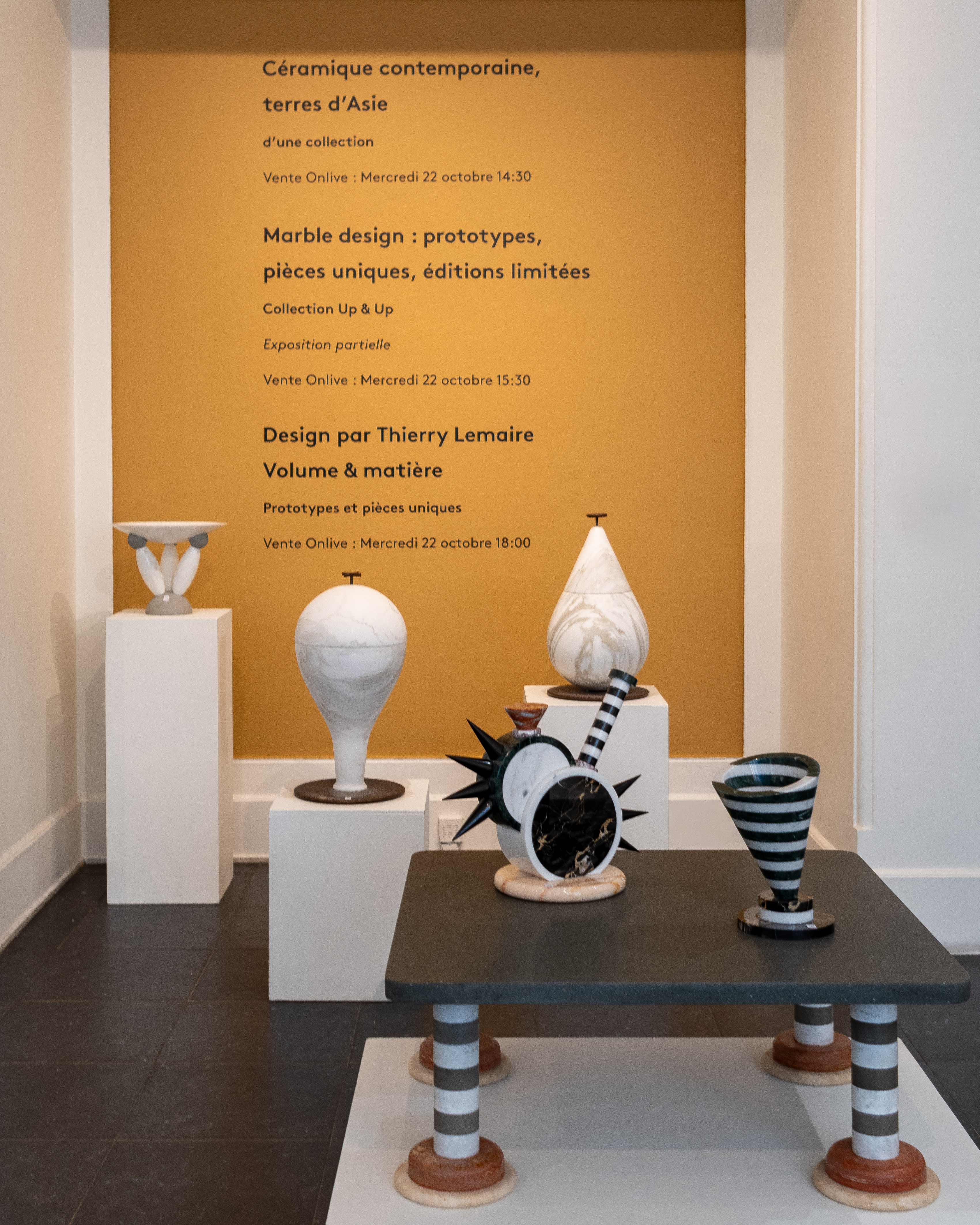 Nous avons le plaisir de vous rappeler que nos ventes ‘Céramique contemporaine, Terres d’Asie’, ‘Design par Thierry Lemaire — Volume & Matière’ ainsi que ‘Marble Design — Collection Up & Up’ se tiendront le mercredi 22 octobre respectivement à partir de 14h30 puis 15h30 puis 17h00 à huit-clos.