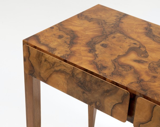 Tout au long de sa carrière, il eut à cœur de sélectionner des matériaux capables de diversifier les rendus des textures et des couleurs. La console Radica qui sortit de son atelier dans les années 1950 a été éditée par Dassi Lissone. La sobriété de ses lignes géométriques dialogue avec les motifs mouvementés du placage d'olivier. Ce mélange entre le bois et laiton se retrouve également dans cette coiffeuse murale de 1957 qui manifeste la sobriété de l’esthétique de son auteur.
