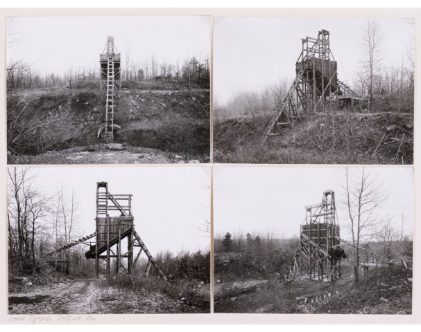 En 1982 à Waltrop, une petite ville à la périphérie de Dortmund, le couple multiplie les prises de vue d’une mine. Vestiges d’une économie sur le point de disparaître, ces clichés ont été proposés à la vente par la maison PIASA en 2017. Adjugés dans le cadre de la dispersion de la collection Daniel Varenne en 2019, les quatre tirages argentiques figurent une installation minière en Pennsylvanie. Ici, la géométrie des morceaux de bois contraste avec la végétation environnante.