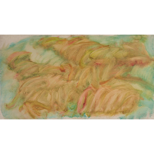 Emblématique du rapport que l’artiste entretien avec la nature, l’huile sur toile « Cœur de printemps » a été réalisée en avril 1961. Adjugée dans le cadre de la vente d’Art moderne et contemporain, elle témoigne de l’énergie qui est celle de l’artiste au cours de son processus créatif. Les titres choisis par Jean Messagier ont souvent un lien avec les saisons comme dans cette aquarelle sur papier, « Les retourneurs d'automne », réalisée autour de 1965.