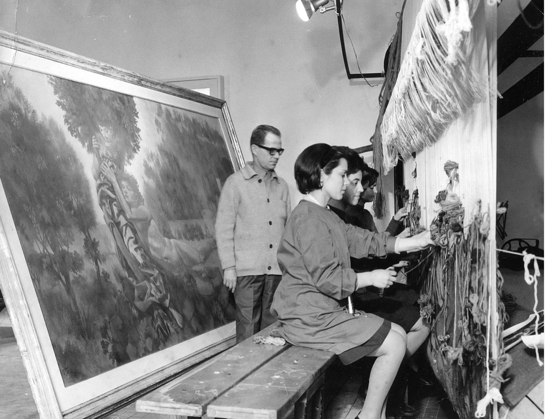 Ces collaborations artistiques indiquent les hautes exigences esthétiques ainsi que les ressources techniques de l’Arazzeria Scassa mises au profit des artistes pendant plus d’un demi-siècle.