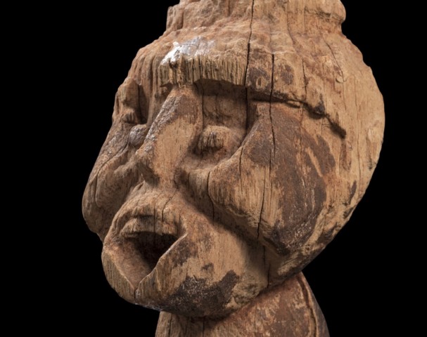 Collectée par Philippe Guimiot à l’époque des recherches et des prospections qu'il mena au Cameroun entre 1965 et 1972, cette œuvre témoigne de son admiration pour l’art archaïque des royaumes Bamiléké. Son style l'apparente étroitement à la statue commémorative de la reine Yugang, épouse du fon Pokam de Batoufam, offrant la même violence dans l'expression, et une audace comparable dans la distorsion du cou et la succession heurtée des angles aigus.