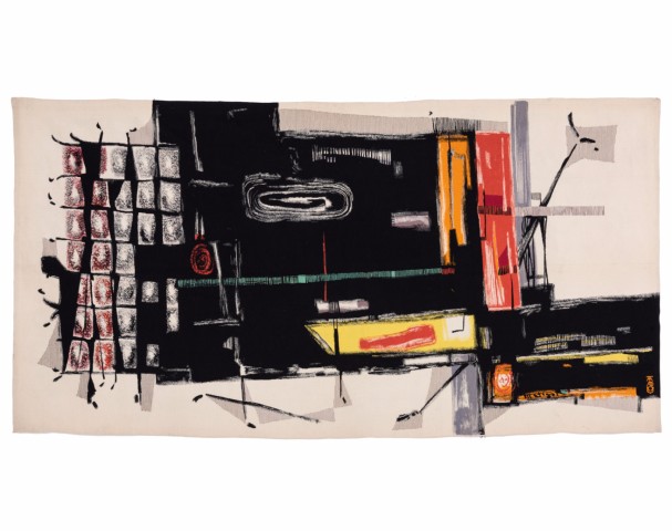 L’art de Matégot est une explosion, des couleurs vives, primaires, primales, menacées malgré tout par les ténèbres, un « outre-noir » qui sculpte la composition et dont la lumière en retour s’efforcerait « de traverser la laine ».
