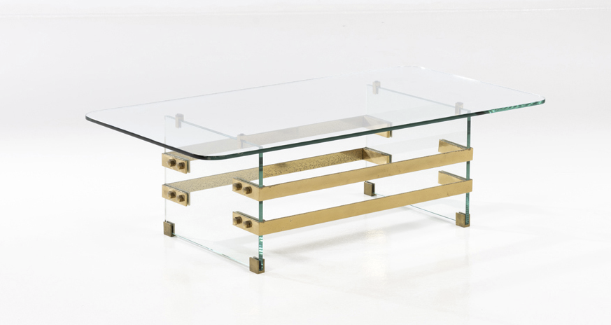 La table basse en laiton, métal et verre, également édité par Fontana Arte a quant à elle été fabriqué au cours des années 1950. Cette pièce exploite particulièrement bien la légèreté et l’élégeance du matériau. Son estimation a été établie entre 5 000 et 7 000 euros.