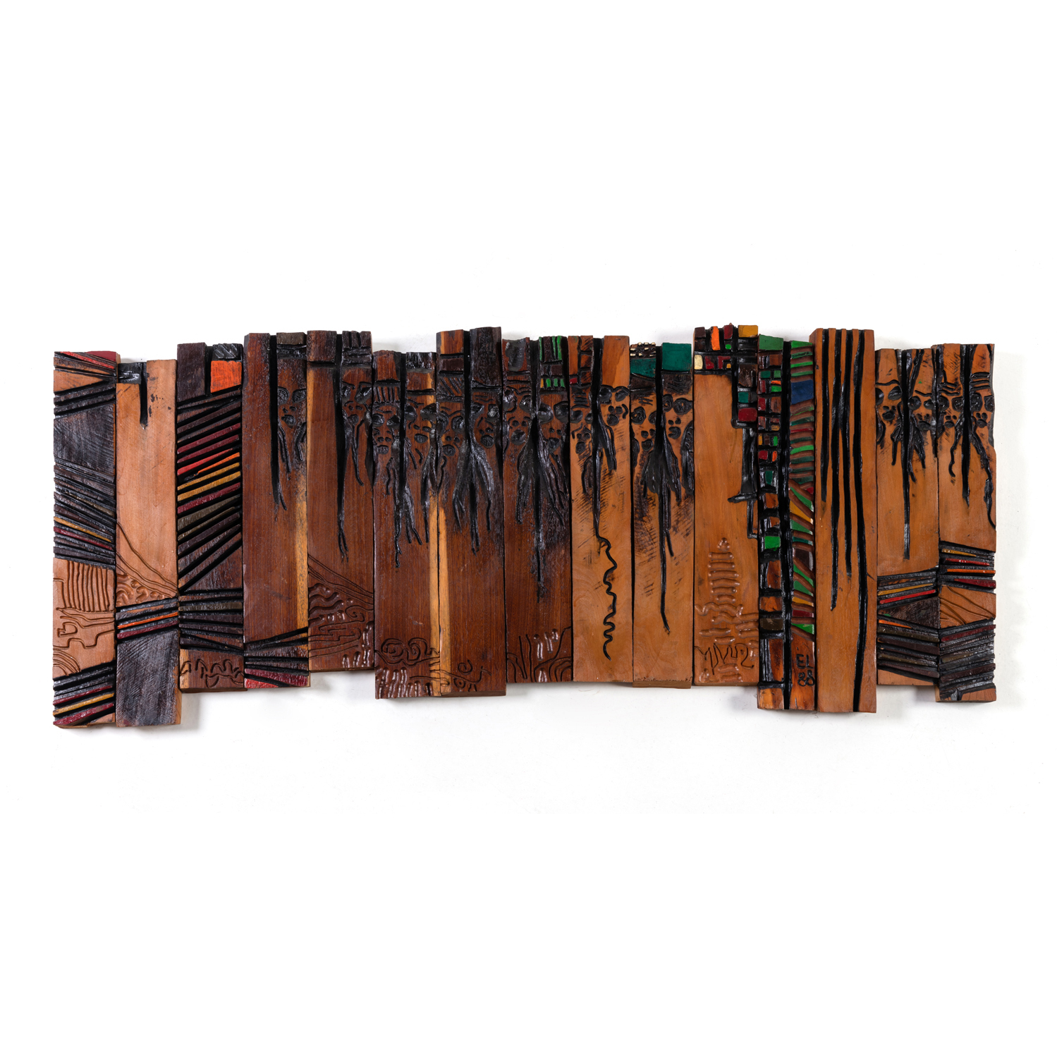 Ces œuvres évoquent la façon dont les individus et les cultures sont constitués de parties hétérogènes. En intégrant des signes indigènes dans sa sculpture il explore et donne à s’interroger sur l'histoire africaine. Anatsui considère que l’histoire de l’Afrique écrite par des étrangers a fait beaucoup de tort aux vraies histoires de ses peuples. Les questions concernant les origines de l'historiographie sont problématiques dans ces parties d'Afrique Subsaharienne qui sont considérées par les étrangers comme dépossédées de systèmes développés d’écriture, et dépourvues de textes écrits. Anatsui emploie les langues et les systèmes visuels indigènes pour répondre à ce genre de critiques et manifeste que les lacunes historiques peuvent être comblées par un acte d'imagination créatrice. Les lacunes qui persistent sont représentées métaphoriquement par des vastes zones de bois roussi sur la sculpture. El Anatsui indique également que le roussissement du bois représente les dommages spirituels infligés aux peuples africains par l'oppression de la domination coloniale.