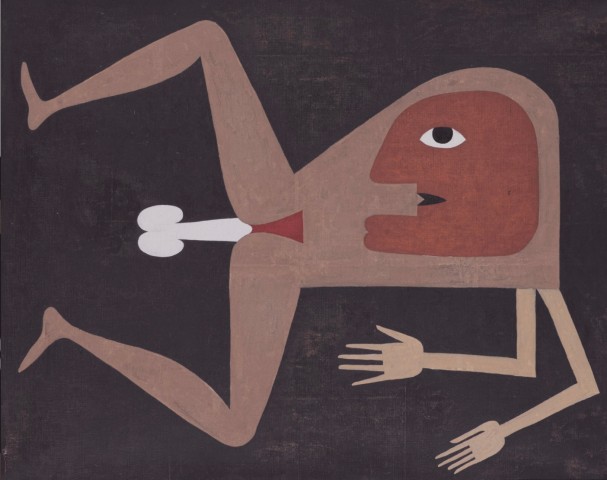 La dernière grande exposition collective qui se soit tenue sous la bannière du groupe surréaliste a été inaugurée en 1959 à la galerie Daniel Cordier, à Paris : André Breton avait décidé de l’intituler « Exposition inteRnatiOnale du Surréalisme », introduisant, comme par effraction, dans une formule assez banale, quatre capitales formant le mot EROS. Le souvenir de cet événement laisse à penser que l’érotisme a été une valeur cardinale du surréalisme. Sarane Alexandrian — qui fut très proche de Victor Brauner, et exclu avec lui du groupe en 1948 — a bien montré qu’il s’agissait là d’une illusion rétrospective. Le mot « érotisme » lui-même a mis du temps à intégrer le vocabulaire des compagnons de Breton, et sa définition dans le Dictionnaire abrégé du surréalisme, en 1938, donne le ton : « Érotisme : Cérémonie fastueuse dans un souterrain ». Breton aura presque exclusivement marié Éros à Thanatos, sous les voûtes d’une cave obscure ; dans Le Surréalisme et la peinture, il cite Georges Bataille, à qui il est d’usage pourtant de l’opposer : « Qui se flattera de braver à la fois, sans sourciller, le préjugé et l’interdit, se trouvera hors d’état de traiter de l’érotisme, dont il aura méconnu, à travers sa propre conscience, le besoin fondamental de transgression », se contentant d’à peine nuancer le propos (« [...] tout n’est pas nécessairement si noir que le veut Bataille »). Il ne fait aucun doute qu’avant-guerre, Victor Brauner a partagé ces vues : les encres et aquarelles de la série Anatomie du désir, en 1936 (elles sont désormais conservées au Centre Pompidou) montrent des corps de femmes tout à la fois désirables et menaçants, dotés de prometteuses « antennes sexuelles » ou « poignées de soutien », mais aussi de becs à cisailler et de ventouses ... Après-guerre, l’éloignement d’avec les membres fondateurs du surréalisme, la découverte des arts premiers et la lecture émancipatrice des livres de la psychanalyste suisse Marguerite Sèchehaye ont orienté Brauner dans une toute autre voie, celle de la représentation en peinture d’une sexualité débridée et librement assumée, exempte des larmes qui, chez Bataille et Breton, sont l’attribut d’Éros. Il s’agissait pour l’artiste de remonter en amont de l’inquiétude et de la culpabilité, vers quelque chose qui toucherait à la magie des premiers âges, à un pansexualisme rédempteur dont seuls les arts de l’Inde, de l’Afrique et de l’Océanie étaient encore susceptibles de donner une idée : ce n’est pas un hasard si le tableau de 1964 qui se présente comme l’impeccable idéogramme d’un accouplement a été peint à « Sepik ». Victor Brauner avait en effet donné à l’un des ateliers où il travaillait, dans sa maison de Varengeville, en Normandie, le nom d’une des plus célèbres vallées de Papouasie-Nouvelle Guinée, d’où nous ont été rapportées maintes figures de corps sexués que les puritains, et les libertins qui sont au fond leurs complices, diraient d’un commun accord parfaitement « impudiques » : mais les mots « pudeur » et « impudeur » avaient cessé d’avoir un sens dans la peinture de Brauner dès 1949, date de ses Onomatomanies. Vulves offertes et pénis en érection y abondent sans que l’on songe une seconde à juger cette imagerie égrillarde, gauloise, inopportune ou scandaleuse. Elle est le fruit d’une vie entière passée à retrouver un monde d’avant la chute, un monde d’avant le péché, où le plaisir n’était ni simple satisfaction d’un besoin — il n’y aurait pas de culture, dans un monde exclusivement préoccupé de l’assouvissement des instincts — ni sombre volupté de la transgression : un pur mystère sans culpabilité ...