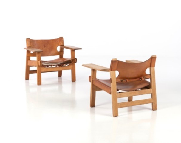 Parmi les pièces les plus emblématiques du designer Børge Mogensen , citons le modèle de fauteuil n°226 “Spanish Chair” dont une paire sera présentée lors de cette vente. Cette série fut alors produite par Erhard Rasmussen en 1951 puis reprise ensuite dans les année 1960 par Fredericia Furniture. La combinaison du chêne et du cuir, donne aux chaises un aspect élégant et robuste au fauteuil , si caractéristique du style innovant du designer qui consiste à épurer les lignes pour en moderniser l’allure et n’en garder que l’essentiel.