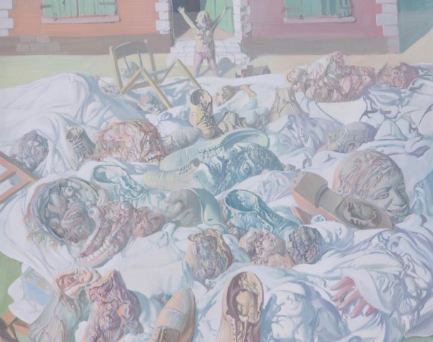 L’œuvre tourmentée de Dado a pour origine les atrocités dont le peintre a été le témoin durant son enfance. Après une formation académique à l’école des Beaux-Arts de Belgrade, il s’installe à Paris en 1956. Grâce à Jean Dubuffet et Roberto Matta, il rencontre le galeriste Daniel Cordier qui l’exposera régulièrement dès 1958. Dado, qui bénéficiera en 1970 d’une exposition au CNAC de Paris, sera présenté au Grand Palais lors de l’exposition historique « 60-72 : douze ans d’art contemporain en France » (1972). Dans le catalogue, on y trouve cité intégralement un texte de Georges Limbour qui a parfaitement exprimé le caractère traumatique de cette peinture : « Le monde énigmatique de Dado, dont notre raison fascinée veut venir à bout, est un monde étrangement peuplé ni de la mort, ni de la vie, comme les Limbes. Les personnages, bien qu’il y en ait de monstrueusement adultes et peut-être prématurément vieillis, participent à l’innocence de l’enfance. Parfois surgissent de vrais enfants sains et joufflus. (…)