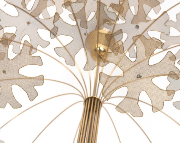 Parmi les "Master pieces" du design scandinave présentées dans la vente figure sans conteste la suspension "Snowflake" (lot 68 - estimation : 60 000 / 80 000 €) en laiton et métal doré de Paavo Tynell. Cette suspension est constituée de quatre sources lumineuses dissimulées dans un socle perforé. Des "flocons de neige" en treillis de métal et laiton flottent sur des fils reliés à des bras allongés diffusant cette lumière si particulière des créations du designer qui font écho aux formes de la nature. Les oeuvres de Paavo Tynell côtoient les œuvres de l’incontournable Poul Henningsen (1894- 1967). La suspension Louvre (lot 133 - estimation : 12 000 / 18 000 €) représente parfaitement le travail de l’artiste, véritable sculpteur de la lumière.