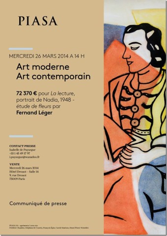 PIASA - Succès pour la vente d'Art Moderne et d'art contemporain du 26 mars 2014