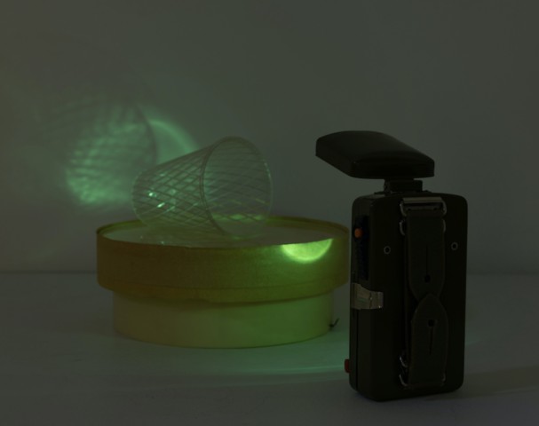 Peter Fischli (né en 1952) & David Weiss (1946-2012) ont commencé leur collaboration en 1979. Son et Lumière (Le rayon vert, 1990) est une installation lumineuse créée à partir de materiaux ordinaires : un gobelet en plastique, une platine tourne-disque et une lampe torche. Une projection de lumière verte et rouge spectaculaire et captivante qui révèle l'intéret des artistes pour le rapport de l'ordinaire au sublime.