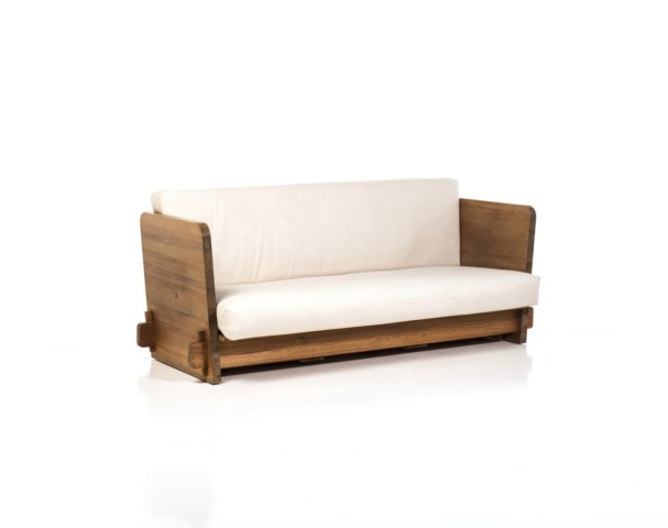 Ce sont des meubles en pin souvent travaillés à la gouge avec un aspect primitif et épuré, qui apporte à ces pièces un modernisme étonnant.