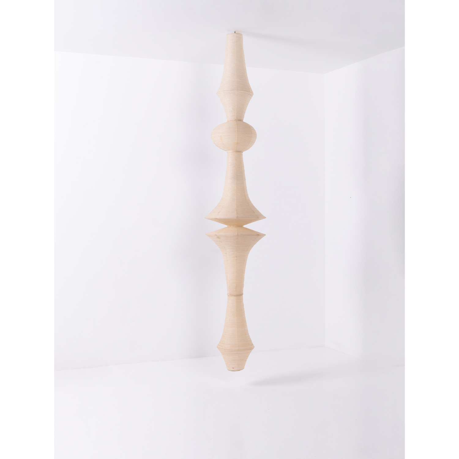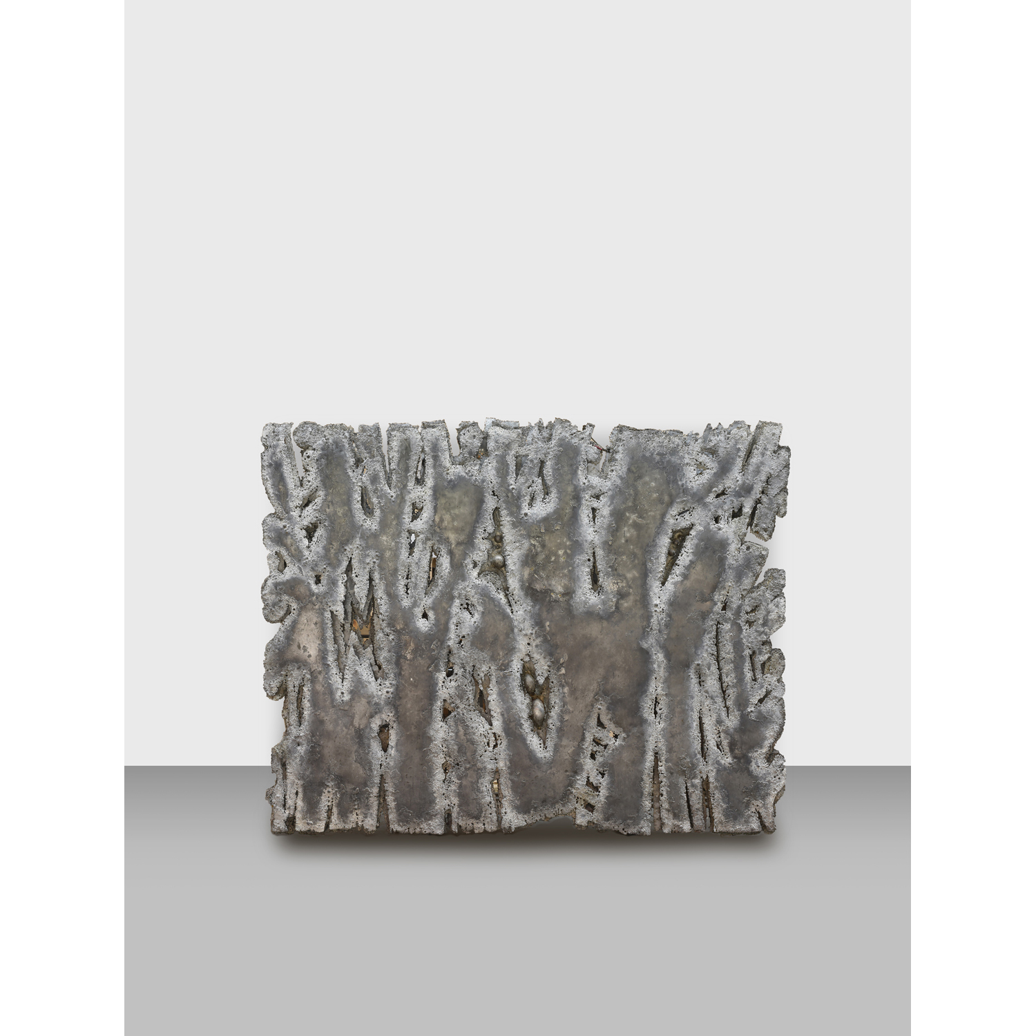 Parmi les 91 lots de la vacation, plus de la moitié porte un regard sur l’œuvre sculpturale de Pierre Sabatier, notamment ses créations murales et ses décors monumentaux sans oublier ses recherches sur le travail de la céramique. Dans le même temps, le catalogue établit une rencontre imaginaire avec la production de luminaires de Isamu Noguchi. Une curation à la manière d’une « correspondance spatiale » entre matière et lumière, à travers la légèreté fragile du papier washi et la force inaltérable des matériaux plébiscités par Pierre Sabatier.