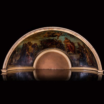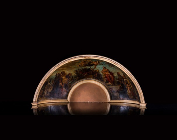 Tout autour, sur les pendentifs, Delacroix a réalisé des figures allégoriques de l'Eloquence, la Théologie, la Poésie et la Philosophie. Le sujet qui orne l'hémicycle est décrit ainsi dans le catalogue de la vente posthume de l'artiste : "Alexandre, après la bataille d'Arbelles, fait enfermer dans une cassette d'or les œuvres d'Homère". Delacroix l'a lui-même détaillé en ces termes dans une lettre à Philippe Burty : "[Alexandre] est représenté assis sur un siège élevé et près d'un vaste trophée élevé sur le champ de bataille. A ses pieds sont des captives menant les enfants, des satrapes dans la posture des suppliants. La Victoire, les ailes déployées, couronne le vainqueur. Derrière le groupe des figures qui portent le coffre, un char fracassé et le champ de bataille dans le lointain".