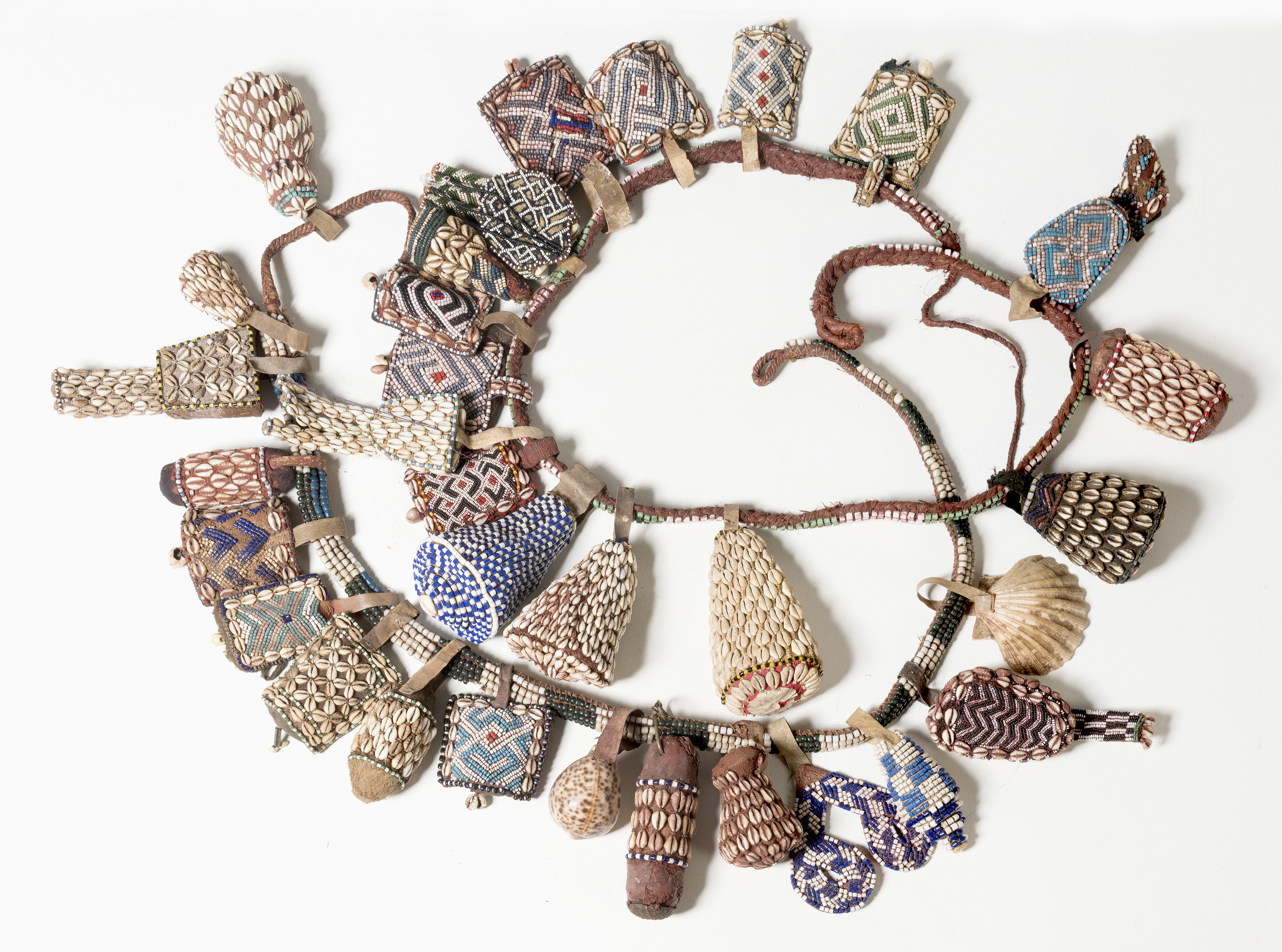 Coquillages, cuir, tissus et perles