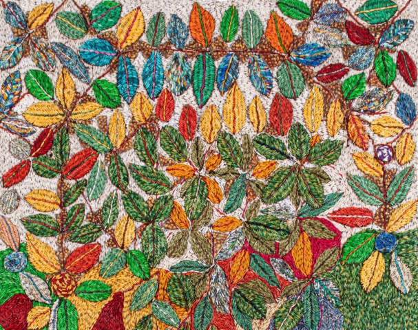 Sanaa Gateja est un artiste pluridisciplinaire. Il est reconnu pour recycler et sublimer les déchets de papier en perles, qu’il assemble en œuvres abstraites ou figuratives sur tissus d’écorce. Sa pratique artistique lui vaut sur surnom de « Bead King » dans son pays l’Ouganda.