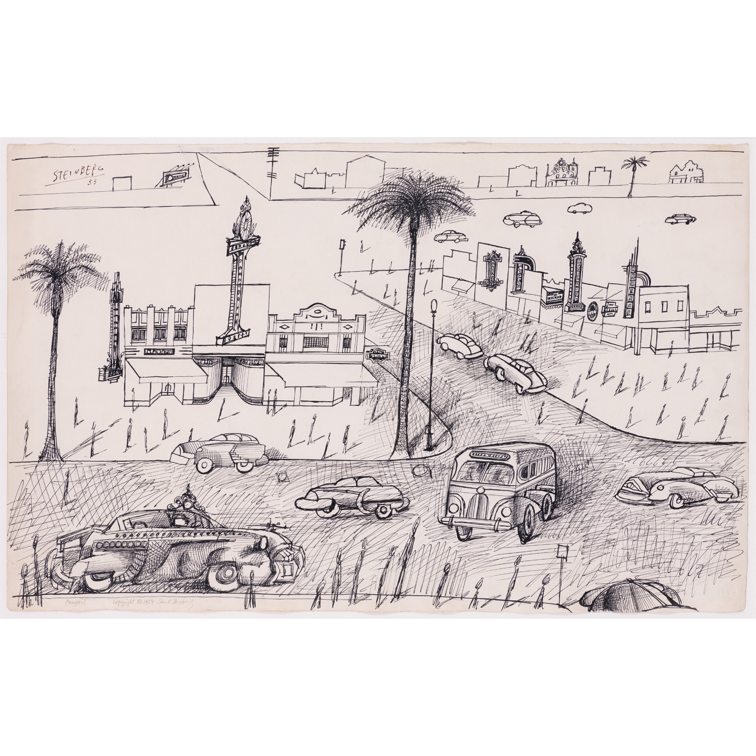 Le collectionneur et galeriste Daniel Varenne possédait plusieurs œuvres de Saul Steinberg dont une encre de chine sur papier intitulée Florida, réalisée en 1953. Elle fut vendue lors de la vacation organisée par la maison PIASA le 22 octobre 2019. Symbole de cet état, un palmier semble fièrement trôner au centre de la composition. Le cadrage en plongée de cette vue urbaine n’est pas sans rappeler le dessin « View of the World from the 9th Avenue », tant de fois imité et plagié, qui se retrouva à la une du New-Yorker en 1976. Le style très vif et dynamique n’en est pas moins subtil et délicat. Elle fut présentée au sein du parcours de l’exposition « Saul Steinberg, l'écriture visuelle » consacrée à l’artiste en 2010 au Musée Tomi Ungerer à Strasbourg.