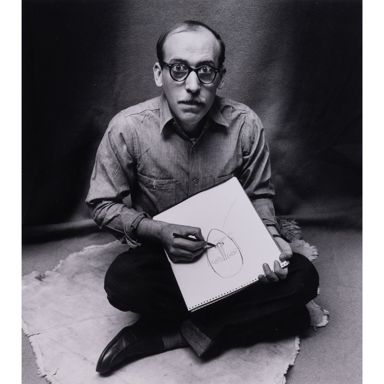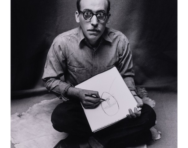 L’artiste aux nombreux visages est photographié en janvier 1947 par Irving Pen, crayon et papier à la main, comme il se devait.