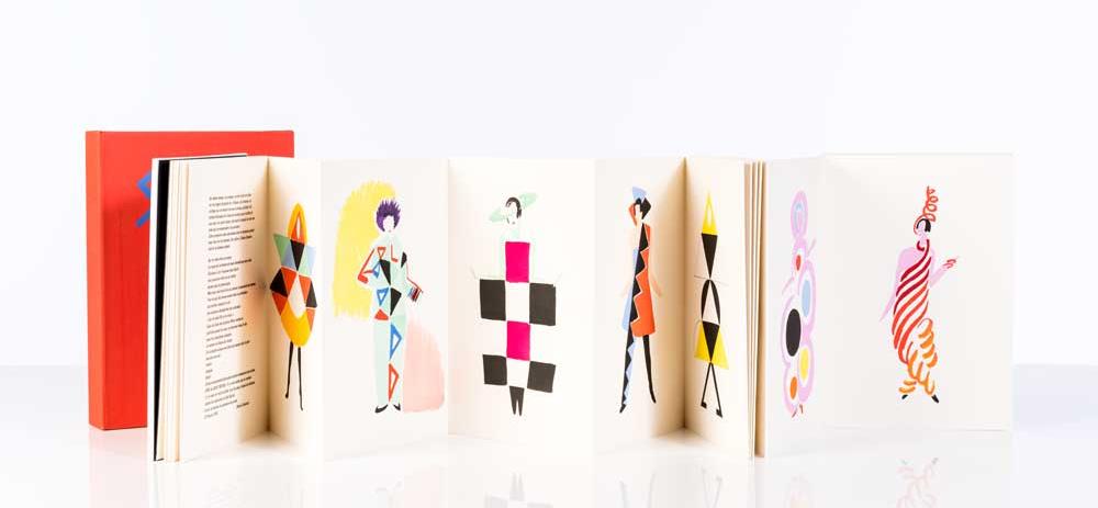 C’est courant 1970, que Sonia Delaunay crée des éditions spéciales avec Artcurial. Si elle reprend certains grands thèmes de ses œuvres picturales, elle transforme l’accessoire de mode en œuvre à part entière. Les motifs de ses décors de théâtres, ses livres illustrés ou ses estampes iconiques Circus ou Automne sont les pièces maîtresses de cette collection unique d’une centaine de pièces.