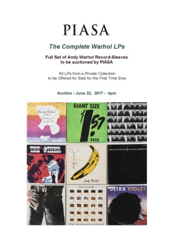 The PIASA sale Masters: Modern & Contemporary Prints & Multiples will include a complete set of all the record sleeves Andy Warhol designed between 1946 and 1987: sixty mythical LPs that chart the musical épopée of the 20th century in the eyes of Pop Art and its leading exponent. This unique ensemble, assembled by a passionate music-lover, transports us through 40 years of musical creativity. It has never been offered at auction before.