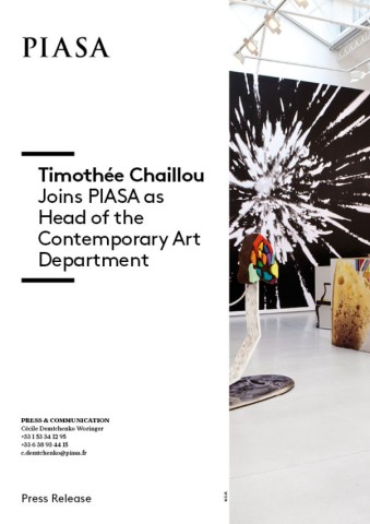 After the re-launch of the 20th Century Decorative Arts & Design Department in 2013, PIASA have appointed Timothée Chaillou to oversee the development of sales of CONTEMPORARY ART.