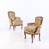 Lot 300 Bergère en noyer sculpté à dossier en cabriolet et décor de feuillages et fleurs, reposant sur des pieds cambré ; (peinte à l'origine) Estampille de Sulpice Brizard, menuisier reçu maître en 1752. Epoque Louis XV (accidents et restaurations) H : 89 x L : 63 cm Provenance : Succession de M D. Lot 301 Petite bergère en noyer à dossier en cabriolet à décor de feuillages et fleurs, reposant sur des pieds cambrés ; (peinte à l'origine). Epoque Louis XV (accidents et restaurations) H :82 x L : 68 cm Provenance : Succession de M D.