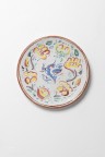 Fleurs et oiseau Assiette en faïence à décor sur fond blanc Signée et porte le monogramme du céramiste au revers Modèle créé vers 1908 Diamètre: 24,8 cm