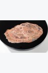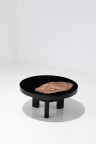 Table basse Bois pétrifié d'Arizona, résine et acier laqué Signature 'Chale' incrustée sur la tranche du plateau Modèle créé en 2015 H 35,5ר70,5cm Note : Un certificat d'authenticité pourra être remis à l'acquéreur.