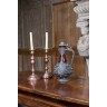 Aiguière en verre rouge, monture en étain à décor dans le goût de la Renaissance. H 36cm Joint: deux bougeoirs en cuivre. H 28cm (Accidents)