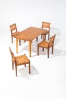 Ensemble composé de quatre chaises modèle n°615 et d’une table Bois et cuir Édition Artek Modèles créés vers 1940 Table : H 71,5×L 130,5×P 79cm Chaises : H 81 ×L 44×P 45cm