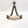 Albert Cheuret (1884-1966) Lustre Bronze à patine verte et albâtre Signé "Albert Cheuret" Date de création : vers 1925