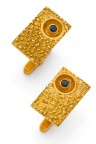 1972 Paire de boutons de manchettes rectangulaires en or jaune 18k (750‰) granité et saphirs Signés, gravés 750 Dimensions : 2,1 x 2,3 x 1,4 cm Poids brut : 15,4 g