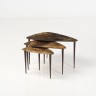 Aldo Tura Trois tables gigognes Parchemin teinté Date de création : vers 1960 H 41 × L 50 × L 73 cm H 38 × L 58 × L 43 cm H 35 × L 30 × L 47 cm
