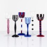 Alessandro Mendini (né en 1931) Six verres Verre Venini Signés A. Mendini Numérotés 48/99, X-XXX, 48/99, 48/99, 48/99, 48/99 et datés 1995, 1993, 1994, 1994, 1999, 1999 Dates de création: années 1990 H 30,5 × Ø 12,5 cm H 30 × Ø 11 cm H 28 × Ø 10 cm H 31,5 × Ø 10 cm H 23,5 × Ø 9 cm H 27 × Ø 9 cm