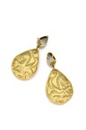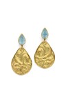 Paire de clips d'oreilles piriformes en or jaune 18k (750‰) chacun orné d'une aigue-marine poire retenant un motif en or repoussé à décor de Pégase Signés, gravés 750, poinçonnés Hauteur : 6,5 cm Poids brut : 23,4 g