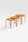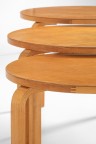 Ensemble de trois tables gigognes Bouleau Édition Artek Tampons ‘ AALTO DESIGN ARTEK’ Modèle créé vers 1940 H 60ר 70cm H 56ר 80cm H 52ר 80cm