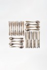 Ménagère - Composée de 24 pièces Acier Signature en creux ‘Andrea Salvetti’ sur chaque couvert Modèle créé en 2015 Couteaux : H 19×L 2,5 cm Fourchettes : H 22×L 2 cm Cuillères : H 19×3,5 cm