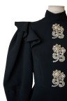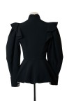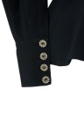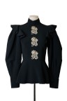 Chemisier noir structuré à basque. Plastron orné de strass. Modèle porté par Rania de Jordanie T. 36 Etat Neuf.