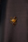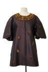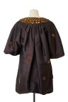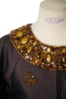 Manteau en soie marron, brodé de sequins et cabochons formant des motifs de fleurs. Large col ornementé. T. 38 Etat NEUF